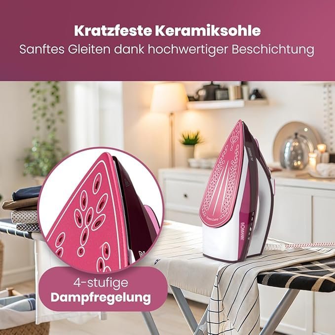 - Utilisez ce fer avec en profitant de toutes les fonction disponibles : pulvérisation, jet de vapeur, vapeur verticale, séchage (la vapeur peut être désactivée) autonettoyante (commutable), fonction anti-goutte, filtration du calcaire.