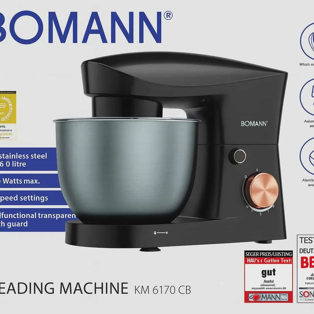 Pétrin Double Crochet Bol Inox 6L, 1500W, 8 Vitesses BOMANN KM 6170 CB Gris Foncé